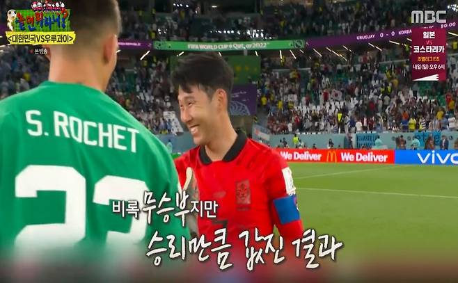 월드클래스 손흥민이 우루과이 선수에 밟혀 그라운드에 나동그라진 상황엔 멤버들 모두 격앙되게 반응했다.