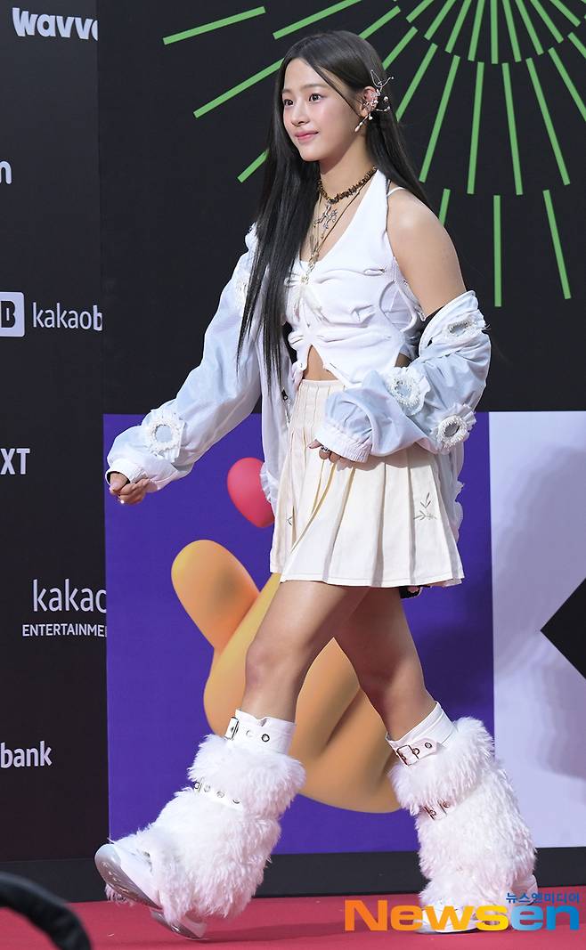 그룹 뉴진스(해린 다니엘 민지 하니 혜인) 가 11월 26일 오후 서울 구로구 고척스카이돔에서 진행된 MMA2022(멜론뮤직어워드) 레드카펫에 참석해 포즈를 취하고 있다.