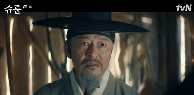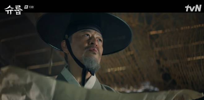 26일 방송된 tvN ‘슈룹’에선 권 의관(김재범 분)의 정체와 황 숙원(옥자연 분)을 추궁하는 대비(김해숙 분)의 모습이 그려졌다.