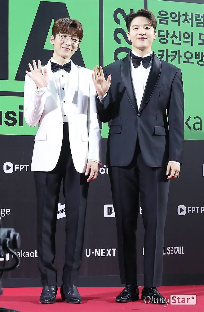 멜로망스(김민석, 정동환)가 26일 오후 서울 구로구 고척스카이돔에서 열린 < MMA2022(멜론뮤직어워드) > 레드카펫에서 포토타임을 갖고 있다.