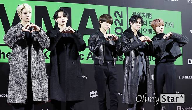 투모로우바이투게더(수빈, 연준, 범규, 태현, 휴닝카이)가 26일 오후 서울 구로구 고척스카이돔에서 열린 < MMA2022(멜론뮤직어워드) > 레드카펫에서 포토타임을 갖고 있다.