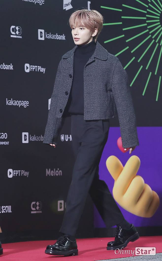 투모로우바이투게더(수빈, 연준, 범규, 태현, 휴닝카이)의 태현이 26일 오후 서울 구로구 고척스카이돔에서 열린 < MMA2022(멜론뮤직어워드) > 레드카펫에서 포토타임을 갖고 있다.