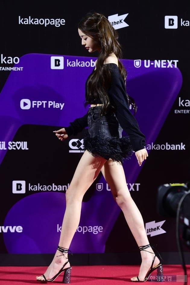그룹 아이브 장원영이 26일 오후 서울 고척동 고척스카이돔에서 열린 '2022 멜론뮤직어워드'(MMA 2022) 레드카펫 행사에 참석해 발걸음을 옮기고 있다.