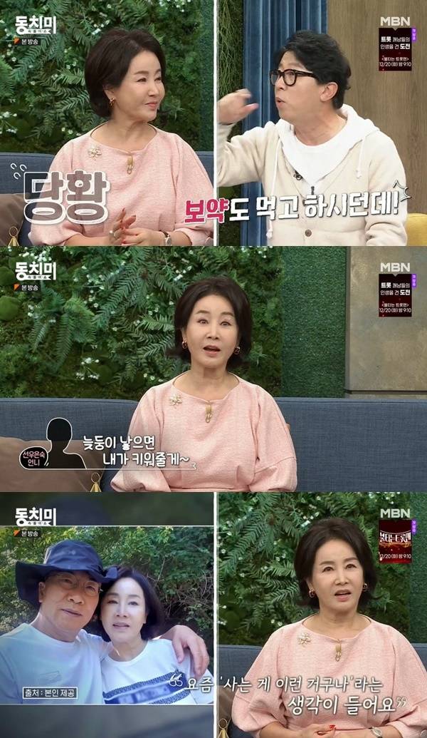 이에 선우은숙은 “언니가 저희가 너무 달달하게 잘 지내니까 늦둥이 낳으면 키워주겠다고 하더라. 사실 저는 이렇게 안 살아봐서 그런지. 사는 게 이런 거구나 싶게 잘 지내고 있다”고 신혼생활을 자랑했다. (사진=MBN ‘속풀이쇼 동치미’ 캡처)