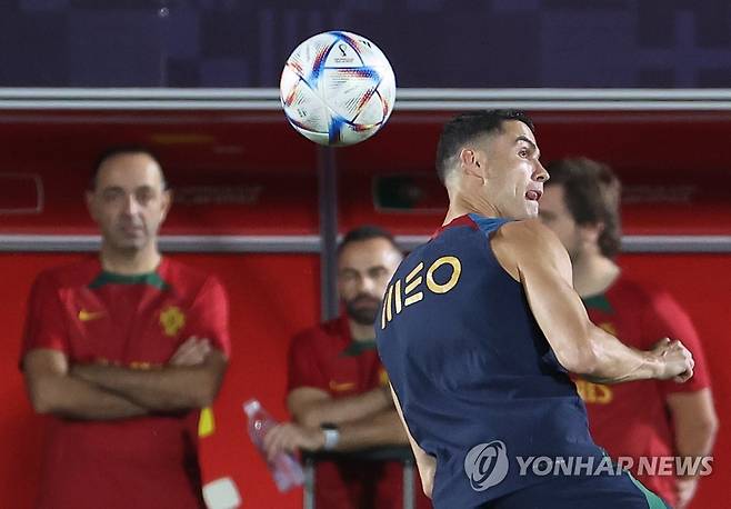 (도하=연합뉴스) 임헌정 기자 = 2022 카타르 월드컵 한국의 조별리그 3차전 상대인 포르투갈 축구 대표팀의 크리스티아누 호날두가 26일 오후(한국시간) 카타르 도하 외곽의 알샤하니야 SC 훈련장에서 훈련하고 있다. 2022.11.26