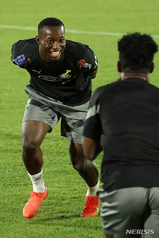 [도하(카타르)=뉴시스] 백동현 기자 = 포르투갈과의 1차전에서 골을 기록한 오스만 부카리가 26일(현지시간) 카타르 도하 어스파이어존에 마련된 가나 축구대표팀 트레이닝센터에서 훈련하고 있다. 2022.11.26. livertrent@newsis.com