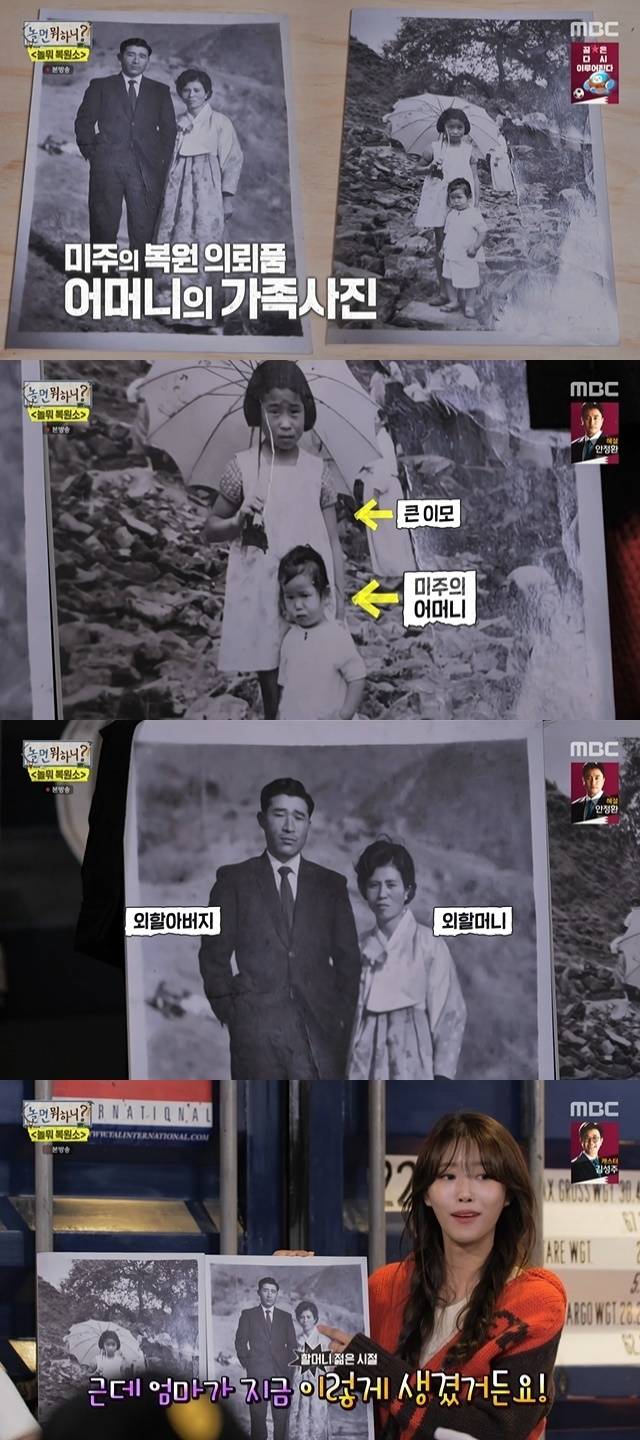 그러곤 이미주는 사진 속 한 아이를 "저희 엄마"라고 가리켰다. 사진 속엔 엄마 외에도 큰 이모, 외할머니, 외할아버지의 모습이 담겨 있었다.