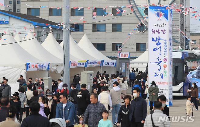 [서귀포=뉴시스] 우장호 기자 = 27일 오후 제주 서귀포시 대정읍 모슬포항에서 열린 '제22회 최남단 방어축제' 행사장을 찾은 도민과 관광객들이 축제 부스를 둘러보고 있다. 2022.11.27. woo1223@newsis.com