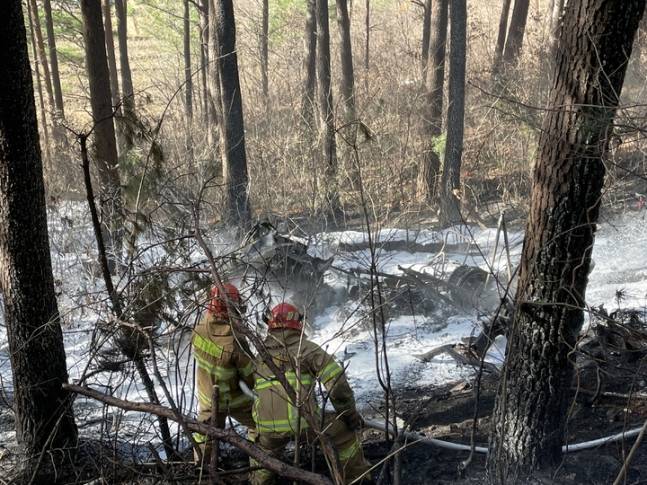 사고 헬기는 추락과 함께 대부분 파손됐다. 추락지점에선 화재가 발생했다. 이 불은 주변 산불로 이어진 뒤 20분 만에 진화됐다. 소방은 인력 100여 명과 장비 20여 대를 동원했다.