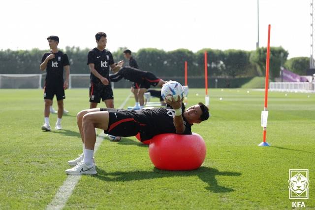 대한축구협회(KFA) 관계자는 "오늘은 모든 선수가 훈련에 참여한다"라면서 부상 선수들이 어느 정도 회복세에 접어들었음을 알렸다. 우루과이전 이후 화두 중 하나는 '김민재의 회복'이었다. 우루과이전에서도 상대 수준급 공격수들을 착실하게 막아냈던 김민재는 벤투호에 없어서는 안 될 자원이다.