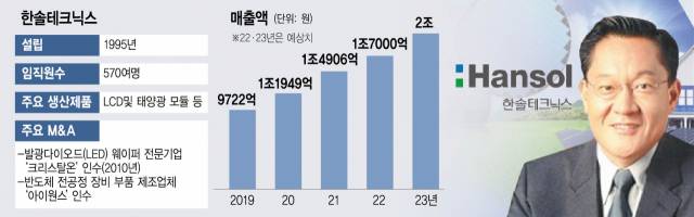 한솔테크닉스는 2010년에도 발광다이오드(LED) 웨이퍼 전문기업 크리스탈온을 인수해 전열을 재정비한 적 있다. 이를 통해 LED칩의 핵심 원재료인 사파이어잉곳 사업으로 진출했다. 이전엔 LCD용 백라이트유닛(BLU)에 주로 의존했으나 M&A를 기점으로 디스플레이용 종합 부품·소재 업체로 도약하며 매출 5000억 원을 넘어 1조 원대로 올라서는 기반을 마련했다. 이런 까닭에 이번 반도체 시장 진출은 두번째 도약을 위한 신성장 동력 확보로 매출 2조 원대를 넘어설 발판을 마련했다는 분석이 나온다.