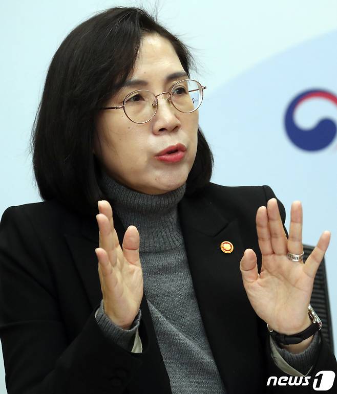 (서울=뉴스1) 김명섭 기자 = 김현숙 여성가족부 장관이 25일 오전 서울 종로구 세종대로 정부서울청사에서 뉴스1과 인터뷰를 하고 있다. 2022.11.25/뉴스1