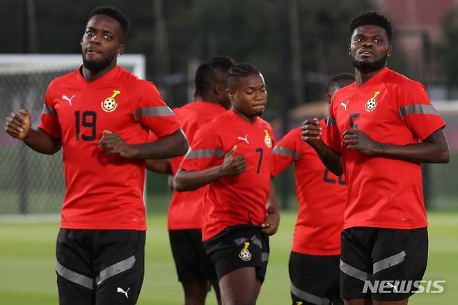 [도하(카타르)=뉴시스] 백동현 기자 = 가나 축구대표팀 선수들이 27일(현지시간) 카타르 도하 어스파이어존 트레이닝센터에서 훈련하고 있다. 2022.11.27. livertrent@newsis.com