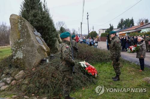 epa10332329 A soldier lays a wreath during a ceremony in Olszynka Grochowska to mark the 192nd anniversary of the November Uprising, in Warsaw, Poland, 27 November 2022. The day marks the November Uprising of 1830, also known as the Polish?Russian War, that erupted against the Russian Empire. EPA/Rafal Guz POLAND OUT