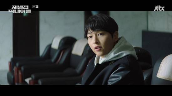 27일 방송된 JTBC 금토일 드라마 '재벌집 막내아들'(이하 '재벌집') 6화에서는 진도준(송중기 분)이 진양철(이성민)에게 제아건설을 손에 넣은 미라클의 주인임을 밝혔다.