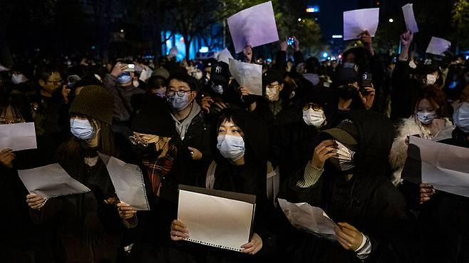 AFP·로이터 통신도 "27일 밤 베이징에서 당국의 제로 코로나 정책과 우루무치 화재 참사에 항의하기 위해 백지를 들고 시위에 나섰다"고 전했습니다.