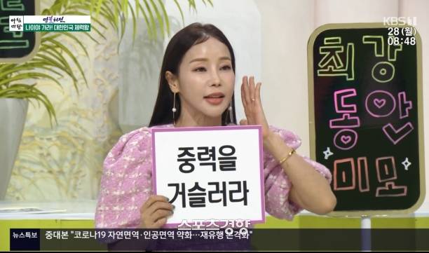 28일 방송한 KBS1 ‘아침마당’에서는 ‘나이야 가라! 대한민국 체력왕’ 주제로 미나, 김명선, 김효중, 김경호, 이준호, 이종민 등이 출연했다.