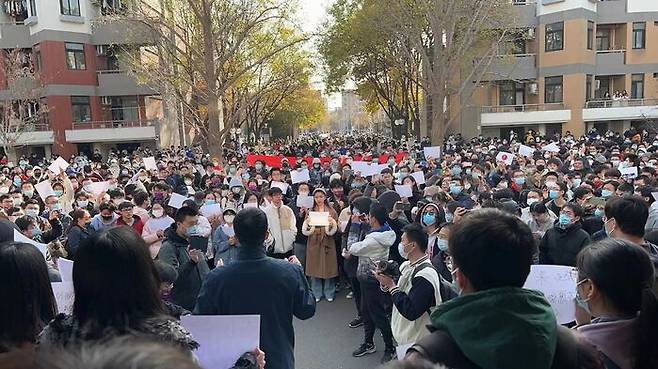 봉쇄 방역정책에 대한 항의로 시작된 중국 내 집회가 전국적으로 번지고 있습니다. 처음엔 "코로나 검사 대신 자유를" 같은 구호가 나왔지만 이제는 "중국에 황제는 필요 없다"며 공산당과 시진핑 주석의 퇴진을 요구하는 구호로 바뀌고 있습니다. 1989년 천안문 사태 이후 최대 규모의 정치적 소요라는 평가까지 나오고 있습니다.