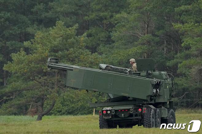 (리예파야 로이터=뉴스1) 최서윤 기자 = 라트비아 리예파야에서 26일(현지시간) 하이마스(HIMARS·고기동 대구경 다연장 로켓시스템) M142를 동원한 군사훈련을 진행하고 있다. 2022. 11. 26.