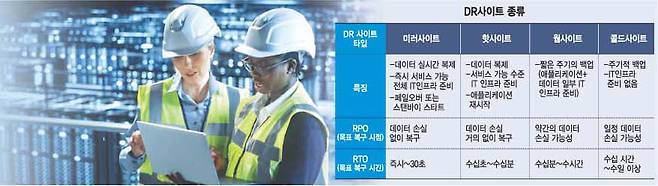IDC '영구적 애플리케이션 가용성' 보고서에 따르면 DR는 데이터센터, 인프라를 복제하거나 DR 공급업체와 계약해 보조 인프라를 유지·관리하는 것을 말한다. DR센터는 실시간 데이터 복제 인프라로 구성되고 장애 시 즉각 서비스 기동을 지원한다. 서비스의 중요도에 따라 DR 모델도 구분된다.