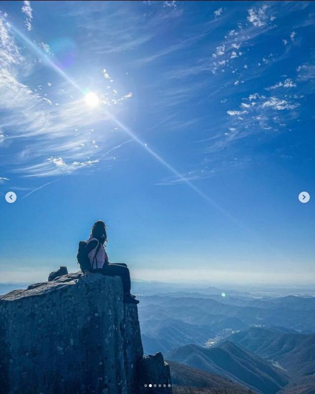 공개된 사진 속에는 무등산의 한 절벽 위에서 멋진 포즈를 취하고 있는 변혜진의 모습이 담겼다.