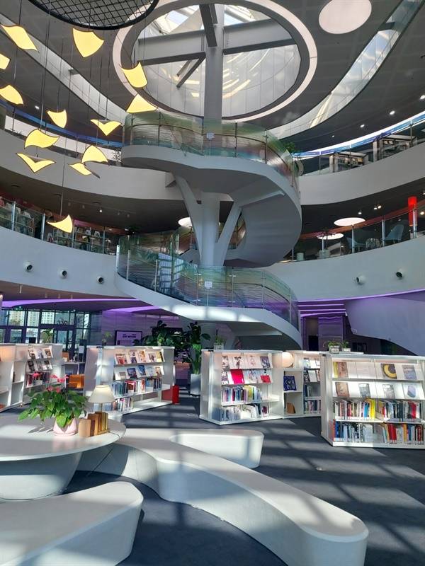 흔히 연결이라든지 융합, 소통 등 그럴듯하고 거창한 개념이 실제 상황과는 따로 노는 경우가 많은데, 이 도서관에서는 그런 개념들이 구두선(口頭禪)에 그치지 않고 잘 적용된 것을 볼 수 있었다. 이 도서관의 공간들은 개방적이고 유기적으로 잘 연결되어 있어서 우리가 흔히 칸막이가 있을 것이라고 예상되는 곳에 칸막이가 없다. 그리고 그런 공간들은 하나로 연결해주는 것이 중앙의 대형 원형계단이다.