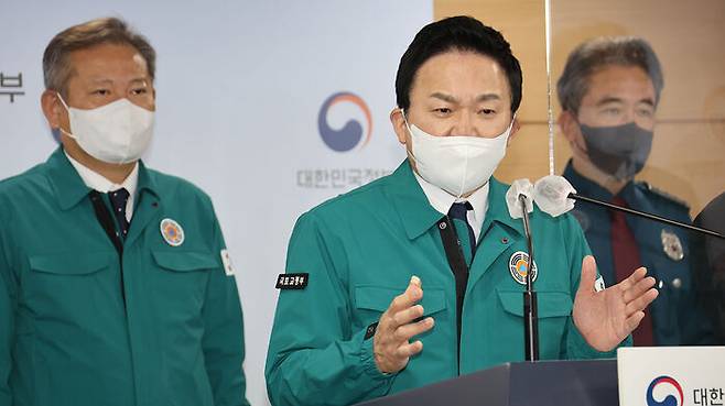 원 장관은 오늘 정부세종청사에서 정부와 화물연대 간 첫 협상이 결렬된 직후 연 기자간담회에서 "국무회의 의결 이후 몇 시간 안으로 개별 명령을 시작할 수 있을 정도로 준비가 돼 있다"고 말했습니다.