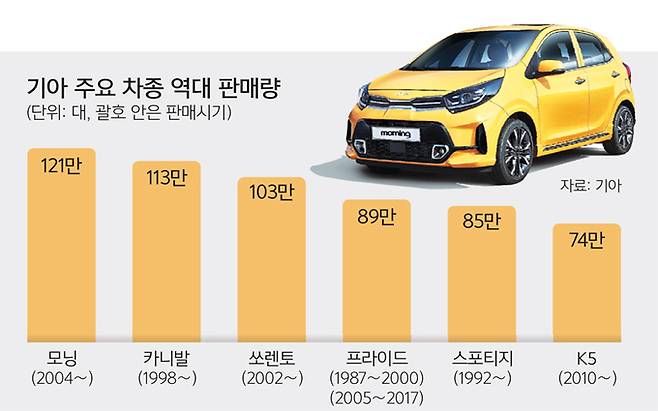 가장 많이 팔린 차는 121만대 모닝
