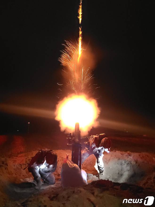 (포항=뉴스1) 최창호 기자 = 육군 제50보병사단이 28일 오후 경북 포항시 북구 송라면 화진훈련장에서 실시한 후반기 마지막 대규모 지해공 합동훈련에서 박격포 사격을 하고 있다.이날 훈련에는 수리온 공격헬기와 해군 고속정, 공군 KF-16, 해경함정 등이 참여해 육·해·공군 합동으로 해안으로 침투하는 가상의 적을 섬멸했다.(육군50사단제공)2022.11.28/뉴스1