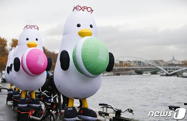 부산엑스포 유치・홍보 위해 파리 센강으로 날아온 ‘부산 갈매기’