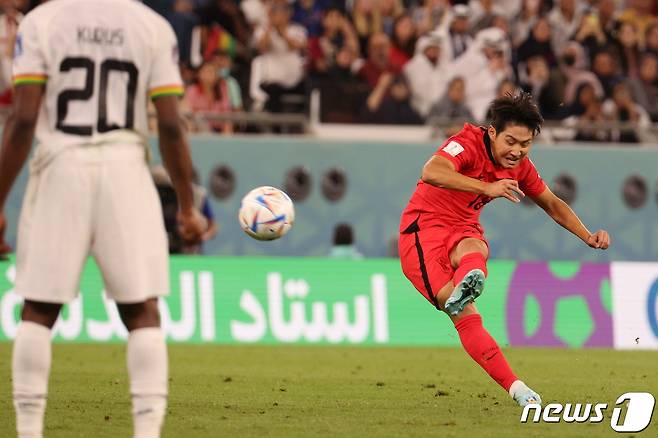 (알라이얀(카타르)=뉴스1) 이광호 기자 = 28일 오후(현지시간) 카타르 알라이얀 에듀케이션 시티 스타디움에서 열린 2022 카타르 월드컵 조별리그 H조 2차전 대한민국과 가나의 경기에서 대한민국 이강인이 프리킥을 시도 하고 있다. 2022.11.28/뉴스1