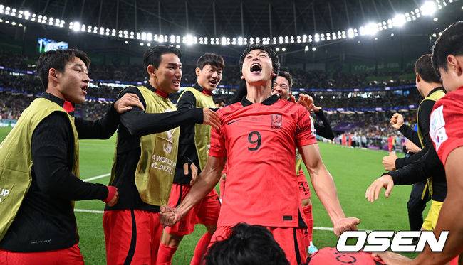 후반 대한민국 조규성이 동점골을 성공시키며 동료선수들과 기뻐하고 있다. 2022.11.28 / soul1014@osen.co.kr