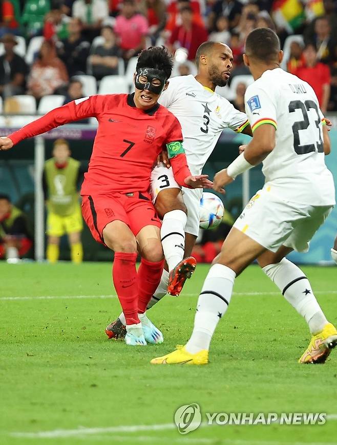 (알라이얀=연합뉴스) 김도훈 기자 = 28일 오후(현지시간) 카타르 알라이얀의 에듀케이션 시티 스타디움에서 열린 2022 카타르 월드컵 조별리그 H조 2차전 대한민국과 가나의 경기. 후반 한국 손흥민이 가나 진영에서 공격을 펼치고 있다. 2022.11.28