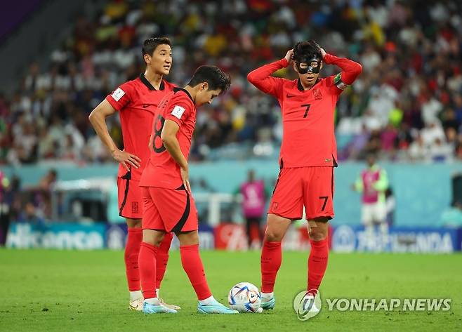 (알라이얀=연합뉴스) 김도훈 기자 = 28일 오후(현지시간) 카타르 알라이얀의 에듀케이션 시티 스타디움에서 열린 2022 카타르 월드컵 조별리그 H조 2차전 대한민국과 가나의 경기. 이강인, 손흥민이 프리킥을 준비하고 있다. 2022.11.28