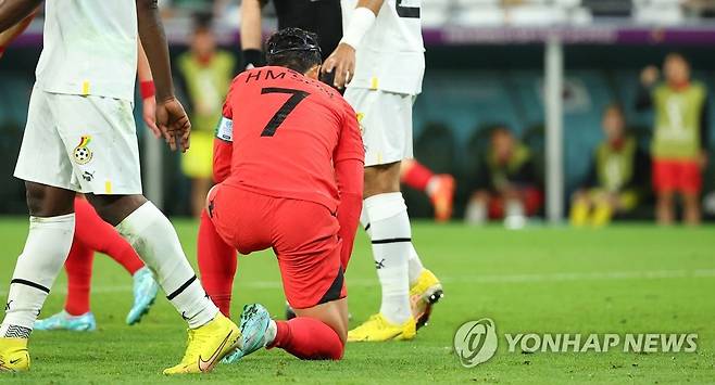 (알라이얀=연합뉴스) 김도훈 기자 = 28일 오후(현지시간) 카타르 알라이얀의 에듀케이션 시티 스타디움에서 열린 2022 카타르 월드컵 조별리그 H조 2차전 대한민국과 가나의 경기. 손흥민이 슛 기회를 놓치고 아쉬워하고 있다. 2022.11.28