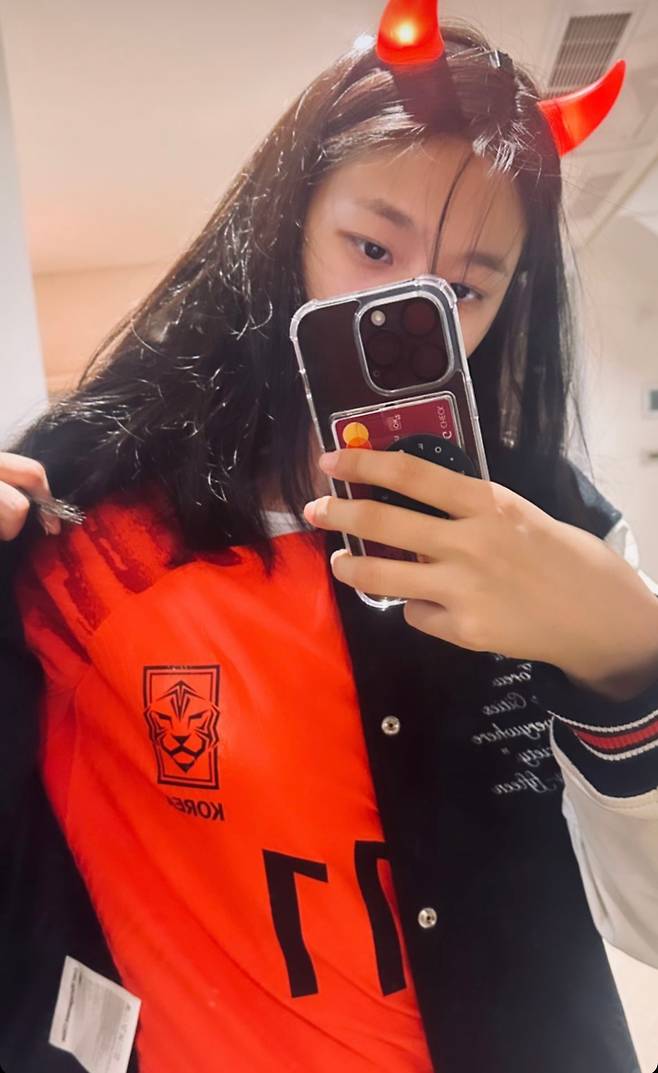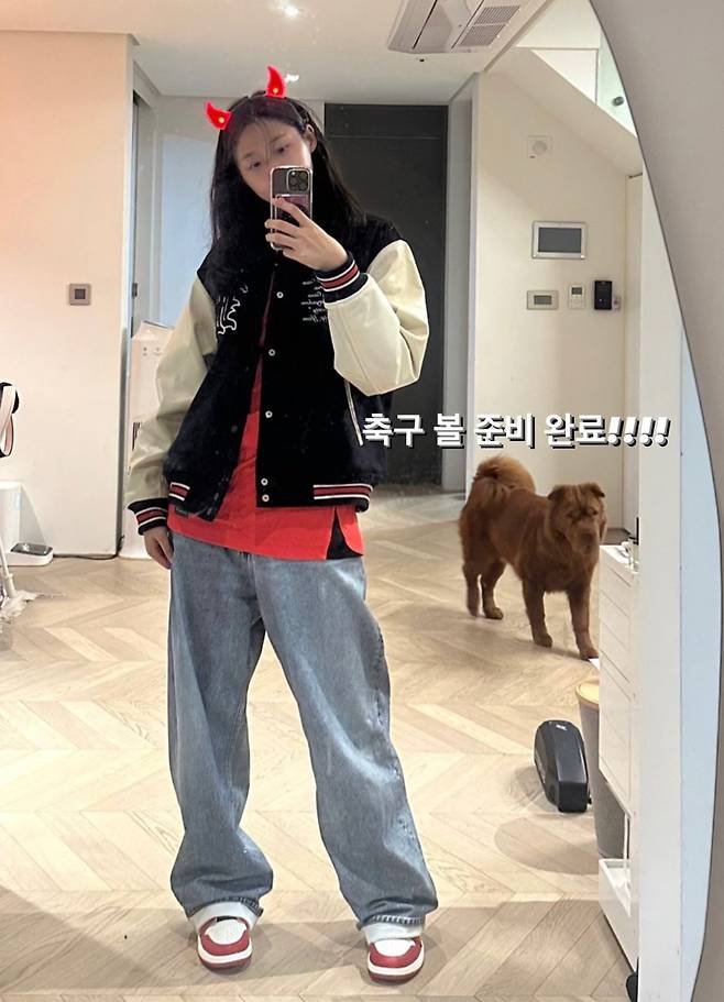 설현, 세상 힙한 붉은 악마 “축구 볼 준비 완료”