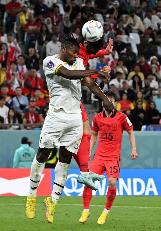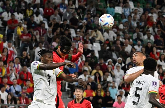 28일 오후(현지시간) 카타르 알라이얀의 에듀케이션 시티 스타디움에서 2022 카타르 월드컵 조별리그 H조 2차전 대한민국과 가나와의 경기에서 손흥민이 헤딩을 하고 있다.