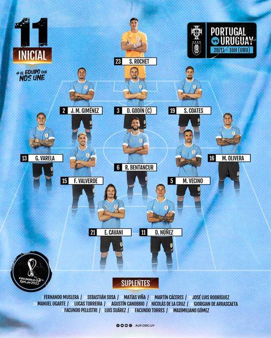 [카타르 LIVE] 포르투갈-우루과이 스타팅 공개… '호날두 선발, 수아레스 벤치'
