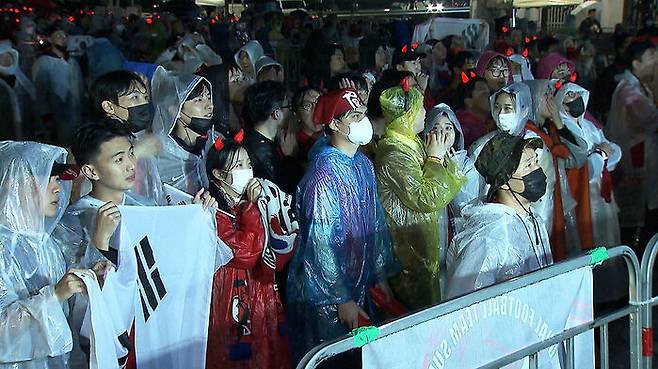 빗속에서도 우리 대표팀을 응원했던 시민들은 비록 아쉽게 졌지만 끝까지 최선을 다해준 우리 선수들에게 박수와 응원을 보냈습니다.