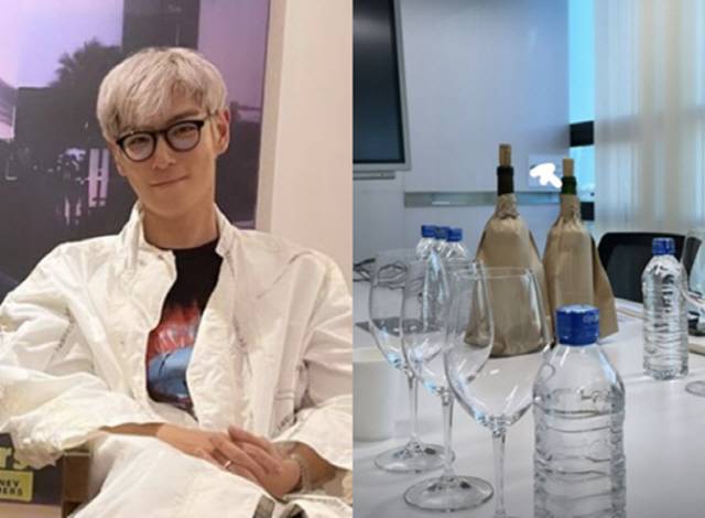 29일 탑은 와인 시음회에 참석해 다양한 와인들을 앞에 두고 시음했다.