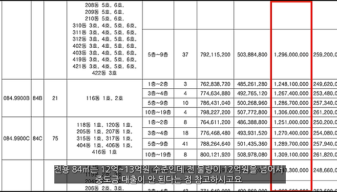 분양가는 전용 29㎡ 5억, 39㎡ 6억 후반, 49㎡ 8억 중반 보시면 됩니다. 전용 59㎡는 9억 후반~10억 중반입니다. 전용 84㎡는 12억~13억원 수준인데, 전 물량이 12억원을 넘어서 중도금 대출이 안 된다는 점 참고하시고요. 계약금은 20%, 중도금 납부는 내년 6월부터 시작합니다.