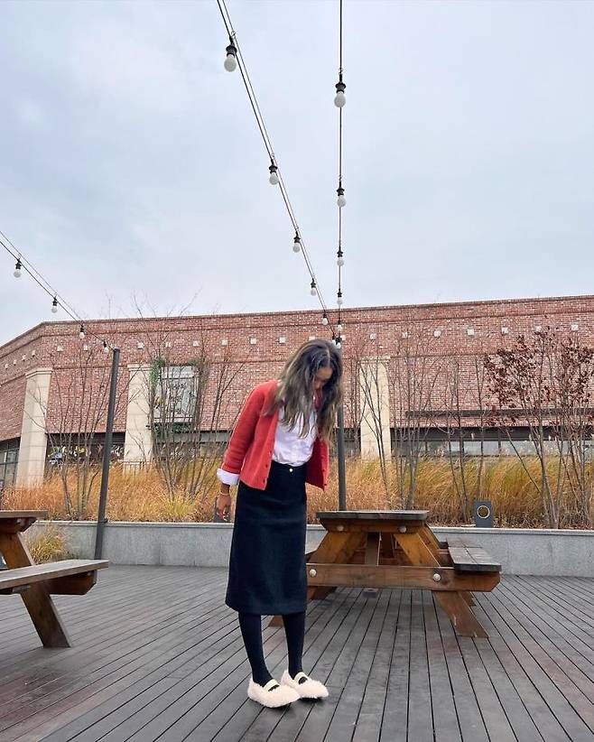 김나영은 대님과 스웨터, 겨울의 데일리 아이템에 바라클라바와 퍼 메리제인을 더했다. 평소 즐겨 입는 아이템이라도 어떤 액세서리를 매치하는 지에 따라 충분히 감각적인 스타일을 완성할 수 있다는 걸 보여준 셈.