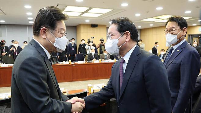 인천 계양을이 지역구인 이재명 대표는 오늘(29일), 국회에서 다른 인천 지역 민주당 의원, 지역위원장 등과 함께 협의회에 참석했습니다.