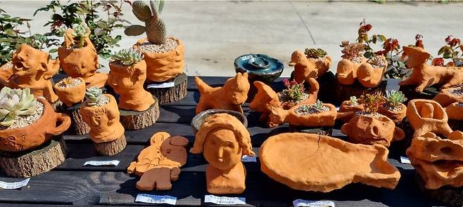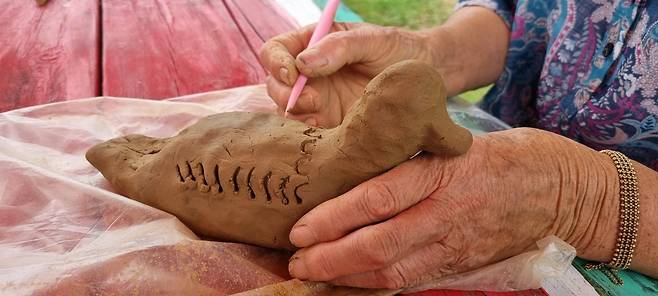 젊은 여자 이장이 마을 일을 맡으면서 마을 어르신들은 흙을 조물거리고 빵을 굽기 시작했고, 지난 10월에는 마을 어르신들이 만든 토우(흙으로 빚은 인형) 작품으로 전시회를 열기도 했죠.