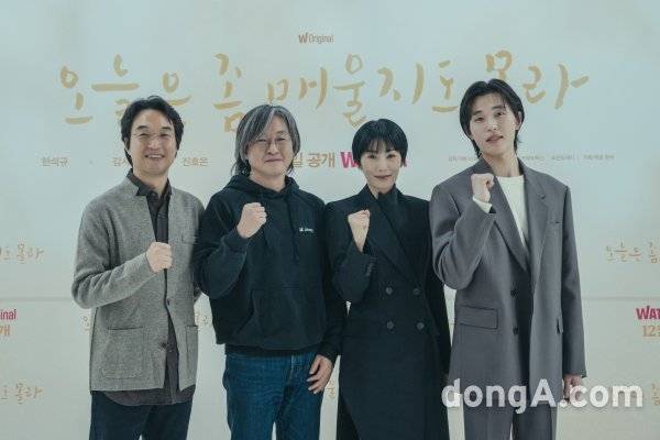 한석규, 김서형, 진호진, 이호재 감독이 29일 오후 진행된 왓챠 오리지널 드라마 '오늘은 좀 매울지도 몰라' 제작발표회에서 포토타임에 임하고 있다.