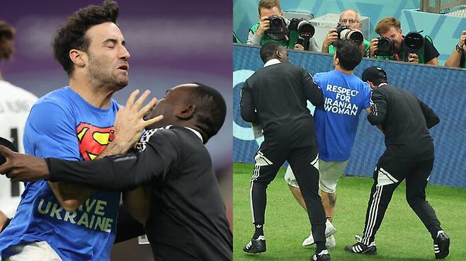 "STOP!" 경기 도중 '무지개 깃발' 휘날리며 뛰어든 슈퍼맨 [월드컵Pick]