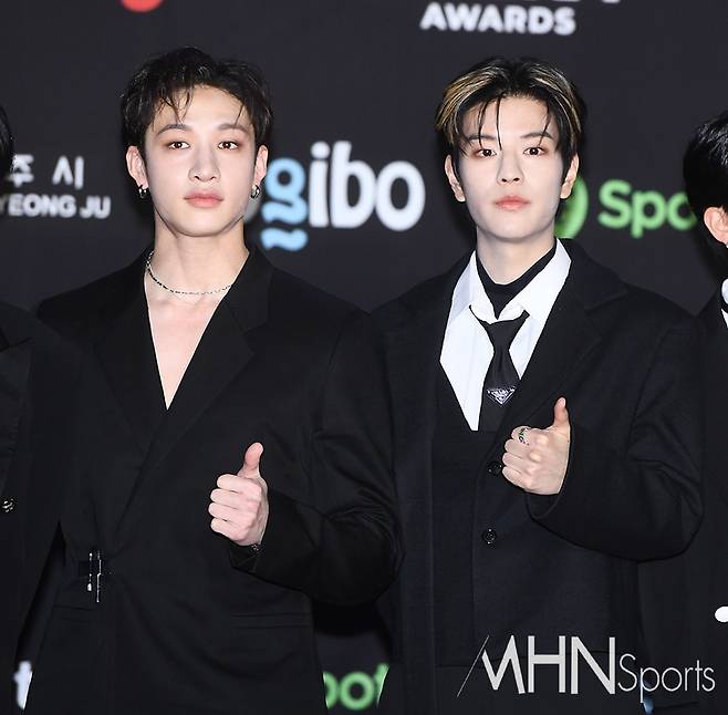(MHN스포츠 오사카(일본), 이지숙 기자) 그룹 스트레이키즈 방찬, 승민이 29일 오후 일본 오사카 교세라돔에서 열린 '2022 MAMA AWARDS'(2022 마마 어워즈) 레드카펫 행사에 참석해 포즈를 취하고 있다.