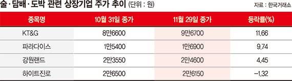금융투자업계 한 관계자는 "주식시장이 여전히 불확실성을 이어가는 가운데 욕구를 해소하려는 소비 심리가 죄악주에 대한 단기 투자 행태로 이어지고 있다"라며 "정부의 허가를 받아야 사업을 영위할 수 있다는 점에서 상대적 경쟁력도 충분한 셈"이라고 분석했다.