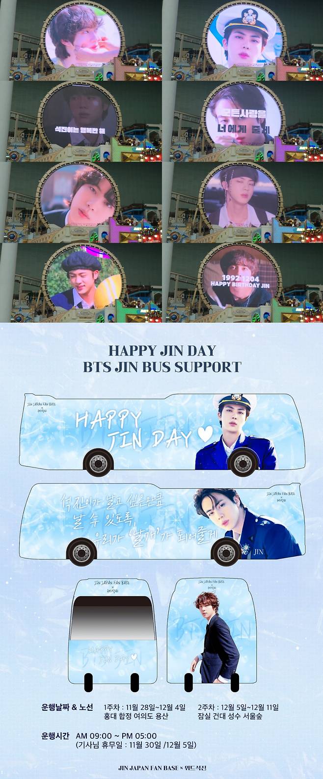 방탄소년단 진 한국과 일본 팬들, 버스 랩핑, LED 영상 등 다채로운 생일 서포트