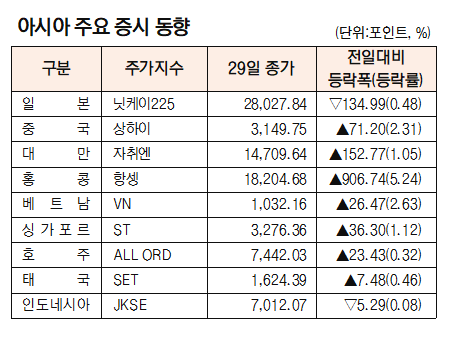 [데이터로 보는 증시]아시아 주요 증시 동향(11월 29일)